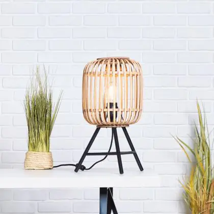 Brilliant Table Lamp Woodrow Metal Bamboo Brown | Suitable for 1x E27