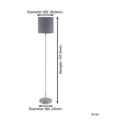 Eglo Floor Lamp Pasteri Steel Satin Nickel Grey | IP20 - Suitable for 1x E27
