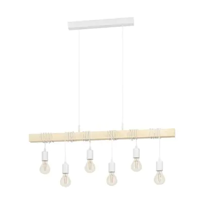 Eglo Pendant Townshend Steel White Wood | IP20 - Suitable for 6x E27