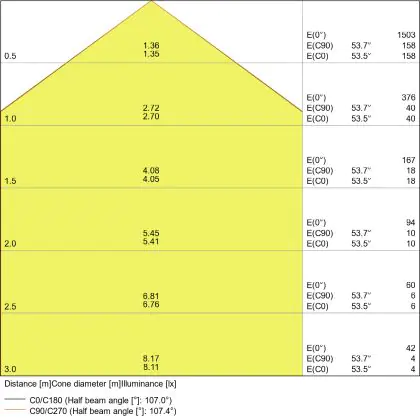 Beam angle of 120°