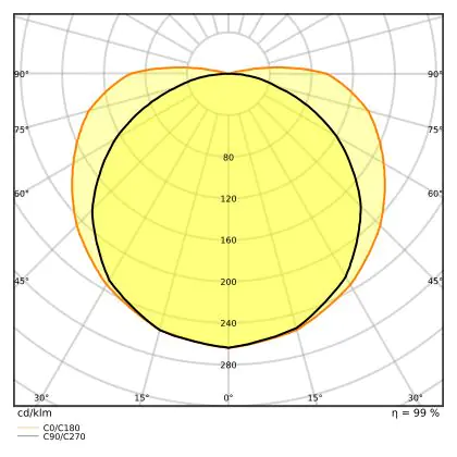 The Luminous Efficacy (lm/W) indicates how efficiently a light source uses energy. We divide the number of lumens by the wattage. The higher the number, the more efficient a product is in terms of energy consumption. LED lighting has a considerably higher lumen/Watt ratio than conventional lighting.