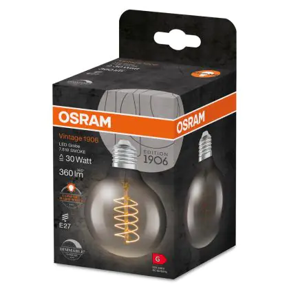 Ledvance Vintage 1906 LED E27 Globe Smoke 7.8W 360lm - 818 Extra Warm White | Dimmable - Replaces 30W