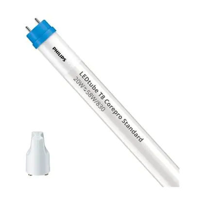 Multipack 10x Philips LED Tube T8 CorePro (EM/Mains) Standard Output 20W 2050lm - 830 Warm White | 150cm - Replaces 58W